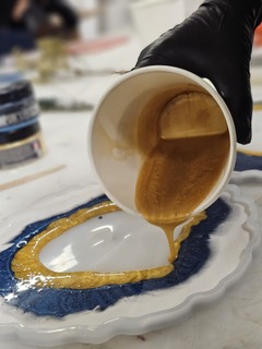 Am ersten Kurstag gießen wir alle Werkstücke vollständig – du lernst den sicheren Umgang mit verschiedenen Harzarten wie UV-Harz, 1cm- und 2cm-Epoxidharz sowie dem schnell aushärtenden, weißgrundigen Acrylharz Hydroflow. Wir gestalten Schalen, Uhren, Vasen oder saisonale Dekostücke – wie Kerzenhalter im Winter oder florale Elemente im Sommer.